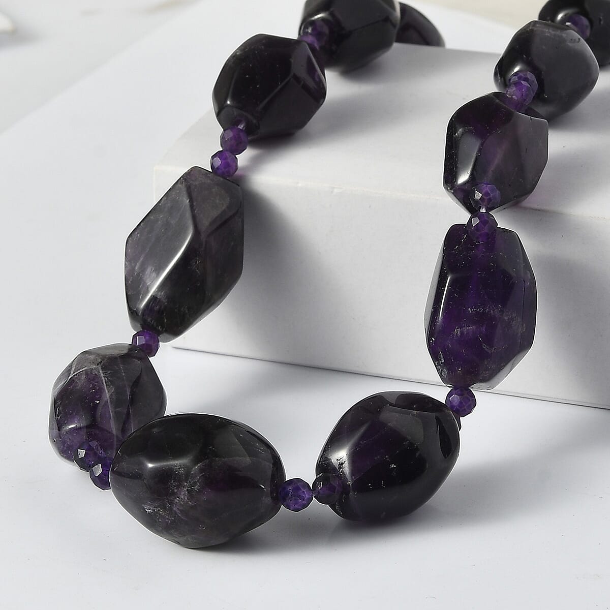EverTrue African Amethyst 455.00 ctw Tumble Earthline Necklace in Platinum Over 18 Inches