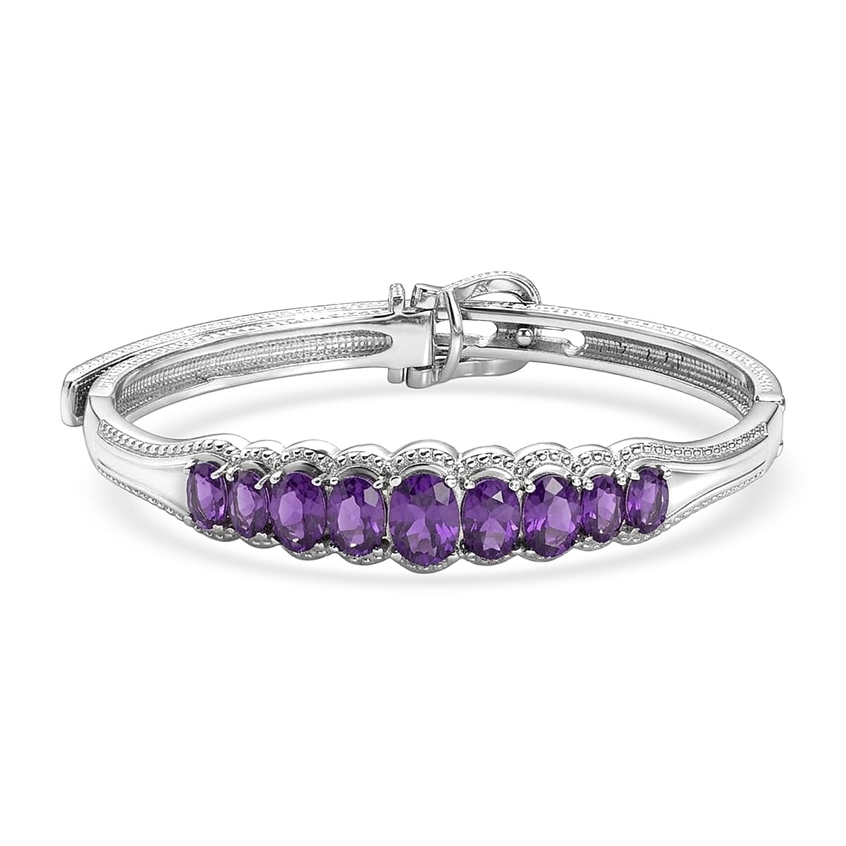 EverTrue African Amethyst 5.85 ctw Bangle Bracelet in Stainless Steel (7.25 In)