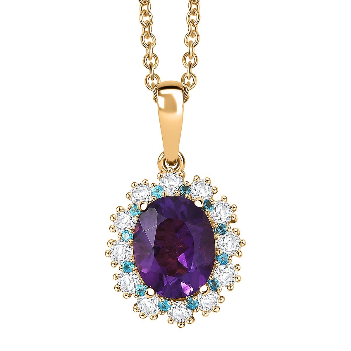 EverTrue African Amethyst and Multi Gemstone 2.75 ctw Regal Bloom Pendant in 18K YG Plated with Stainless Steel Necklace (20 Inches)