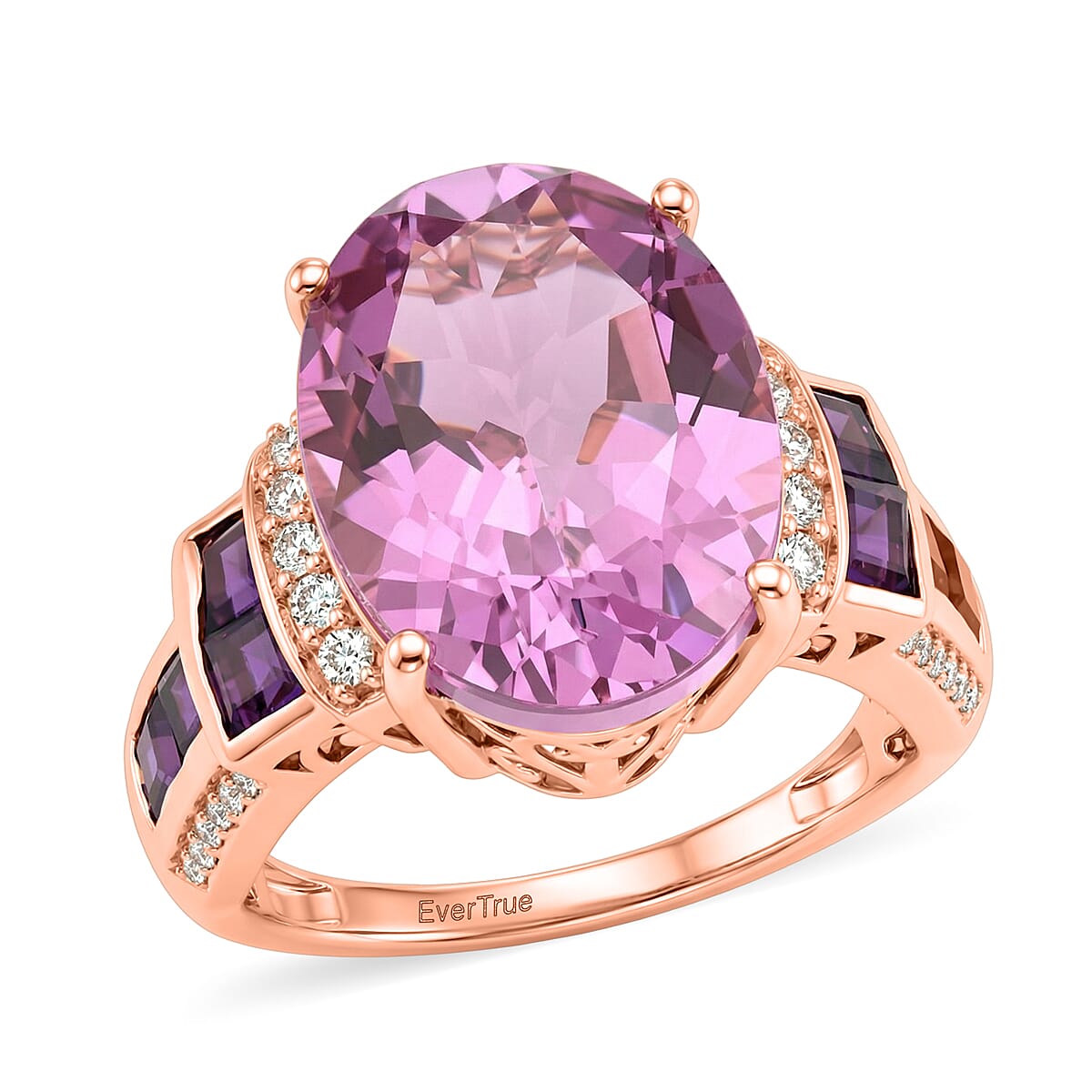 EverTrue African Lilac Quartz, Multi Gemstone Ring in 18K RG Plated (Size 10.0) 11.10 ctw