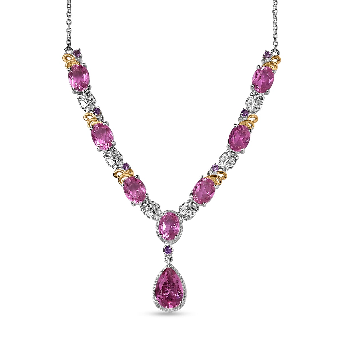 EverTrue African Lilac Quartz (Triplet) and African Amethyst 14.00 ctw Necklace in 18K Yellow Gold Plated and Platinum Bond 20 Inches