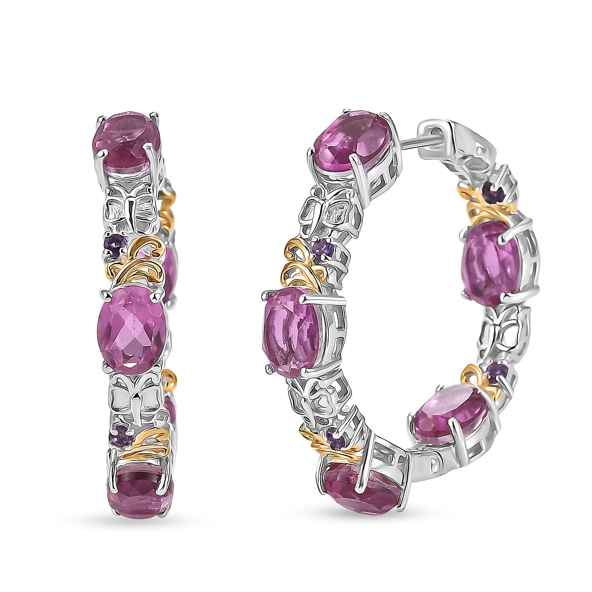 EverTrue African Lilac Quartz (Triplet) and African Amethyst 15.35 ctw Hoop Earrings in 18K Yellow Gold Plated and Platinum Bond