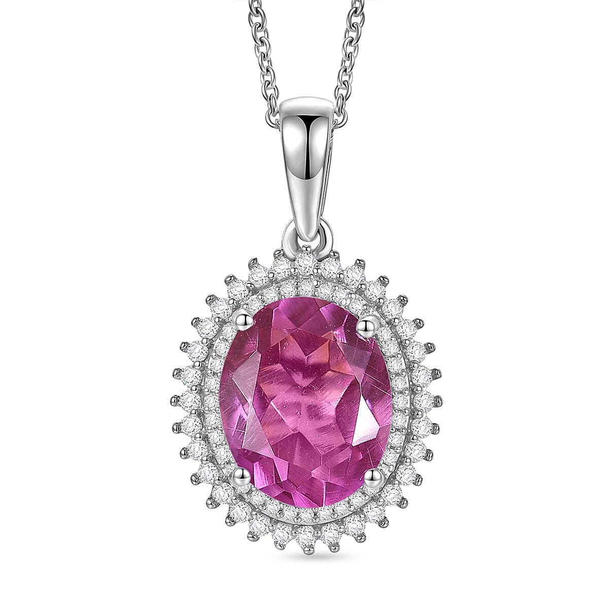 EverTrue African Lilac Quartz (Triplet) and White Zircon 4.70 ctw Pendant in Platinum Bond with Stainless Steel Necklace 20 Inches