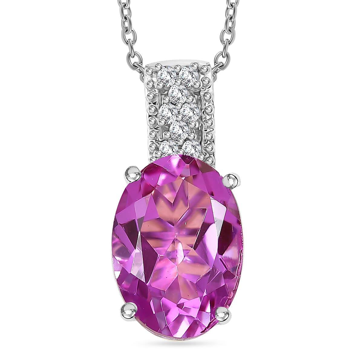 Evertrue African Lilac Quartz (Triplet) and White Zircon 6.10 ctw Pendant in Platinum Bond with Stainless Steel Necklace 20 Inches