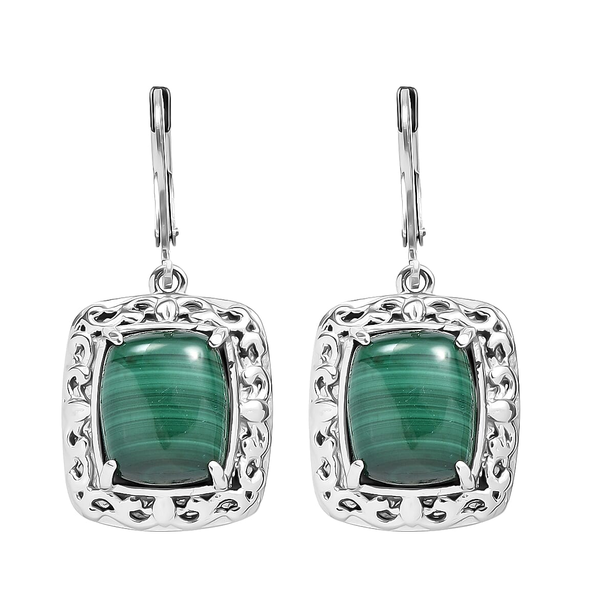 EverTrue African Malachite 13.80 ctw Earrings in Stainless Steel