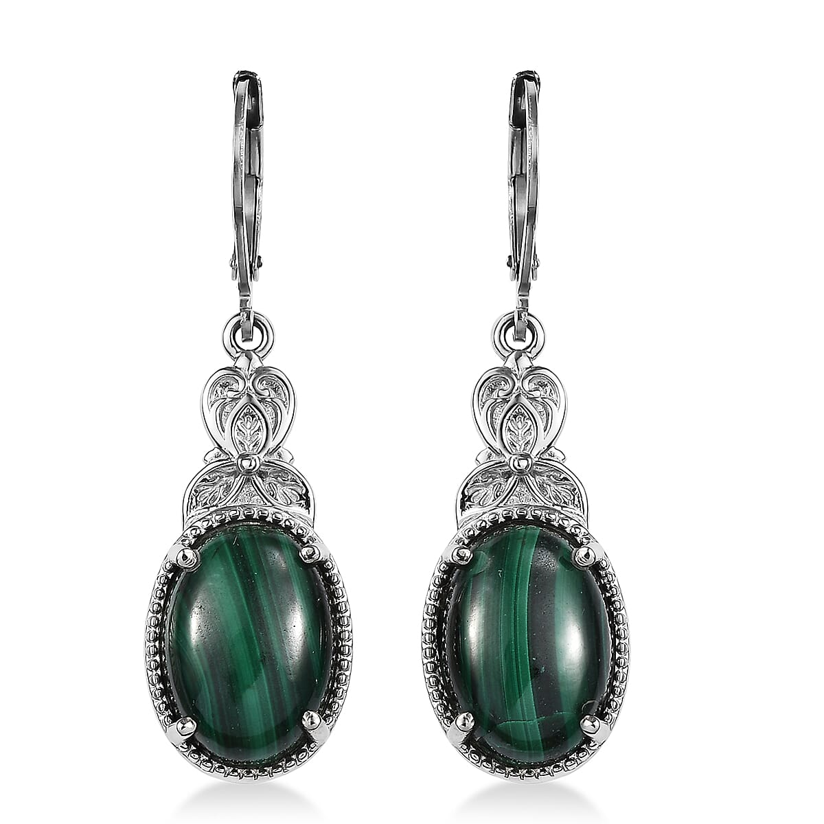 EverTrue African Malachite 16.90 ctw Earrings in Stainless Steel