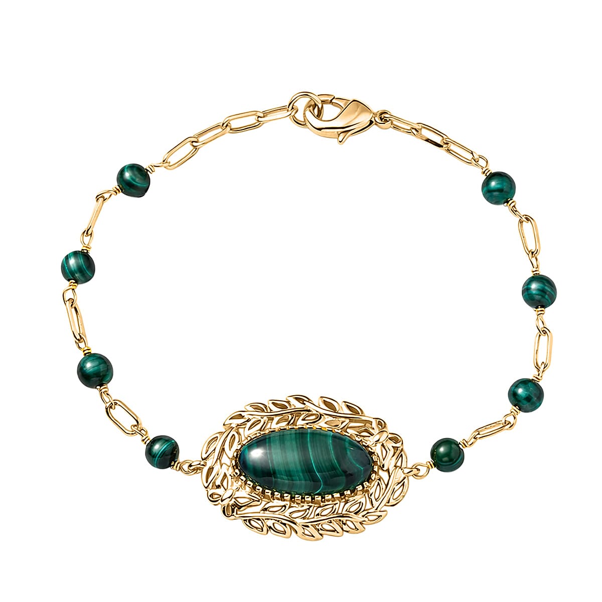 EverTrue African Malachite 17.90 ctw Bracelet in 18K YG Plated (7.25 In)