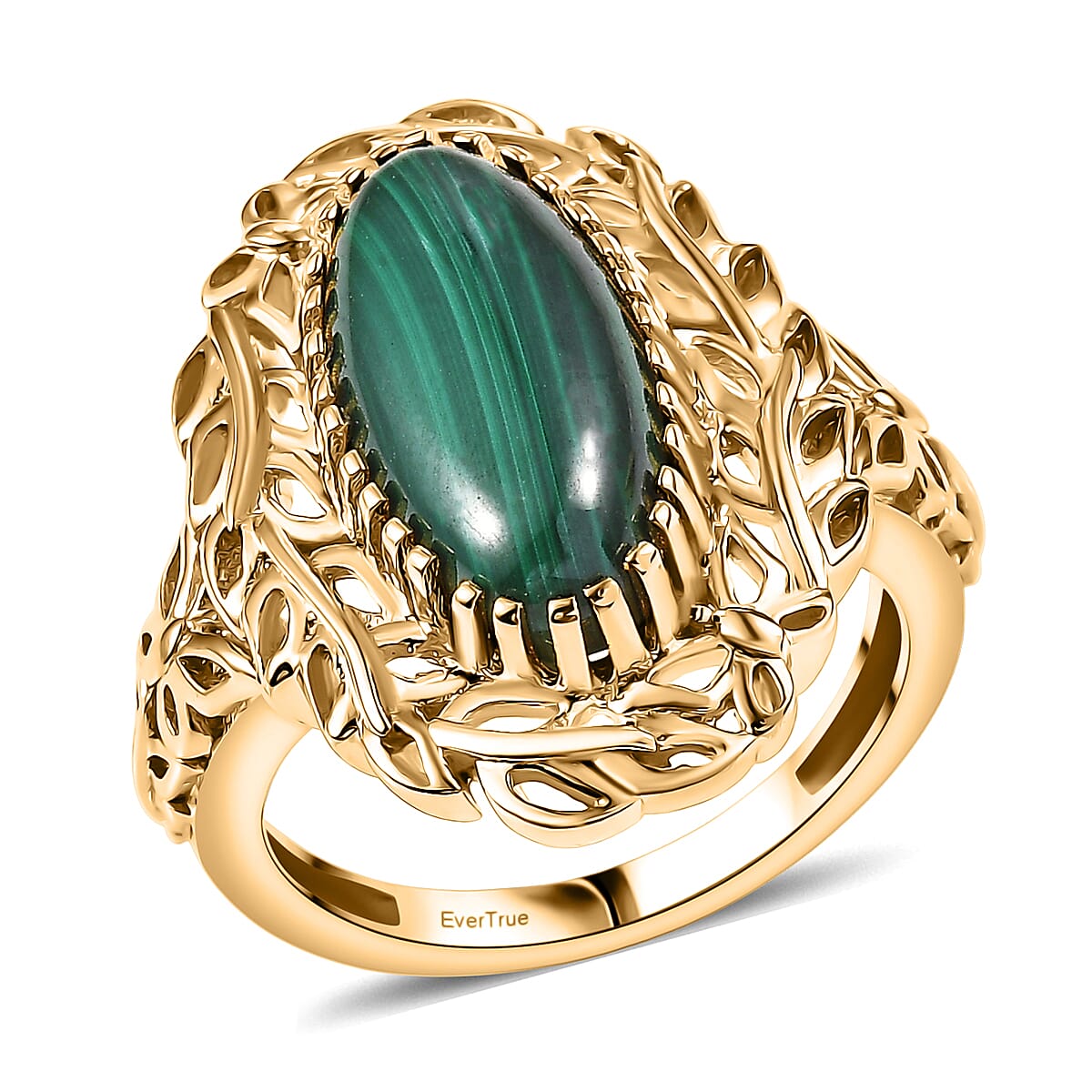 EverTrue African Malachite 7.15 ctw Tropical Forest Ring in 18K YG Plated (Size 5.0)