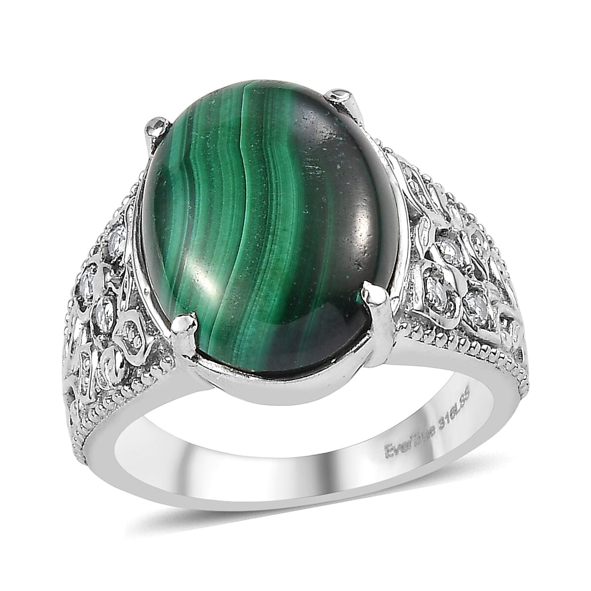 EverTrue African Malachite, Simulated Diamond Ring in Stainless Steel (Size 6.0) 12.90 ctw