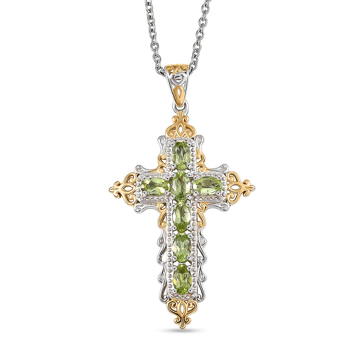 Evertrue Arizona Peridot 1.60 ctw Pendant in 18K Yellow Gold Plated and Platinum Bond with Stainless Steel Necklace 20 Inches