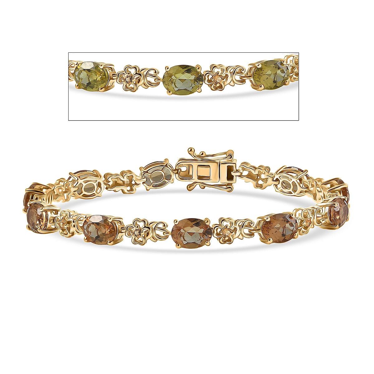 EverTrue Autumn Alexite and Brazilain Citrine 15.20 ctw Blossom Bracelet in 18K YG Plated (7.25 In)