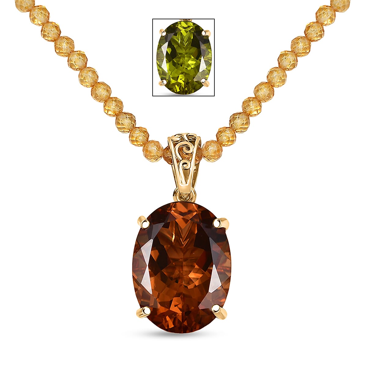 EverTrue Autumn Alexite and Brazilan Citrine 71.00 ctw Fallfire Pendant Necklace in 18K YG Plated 20 Inches
