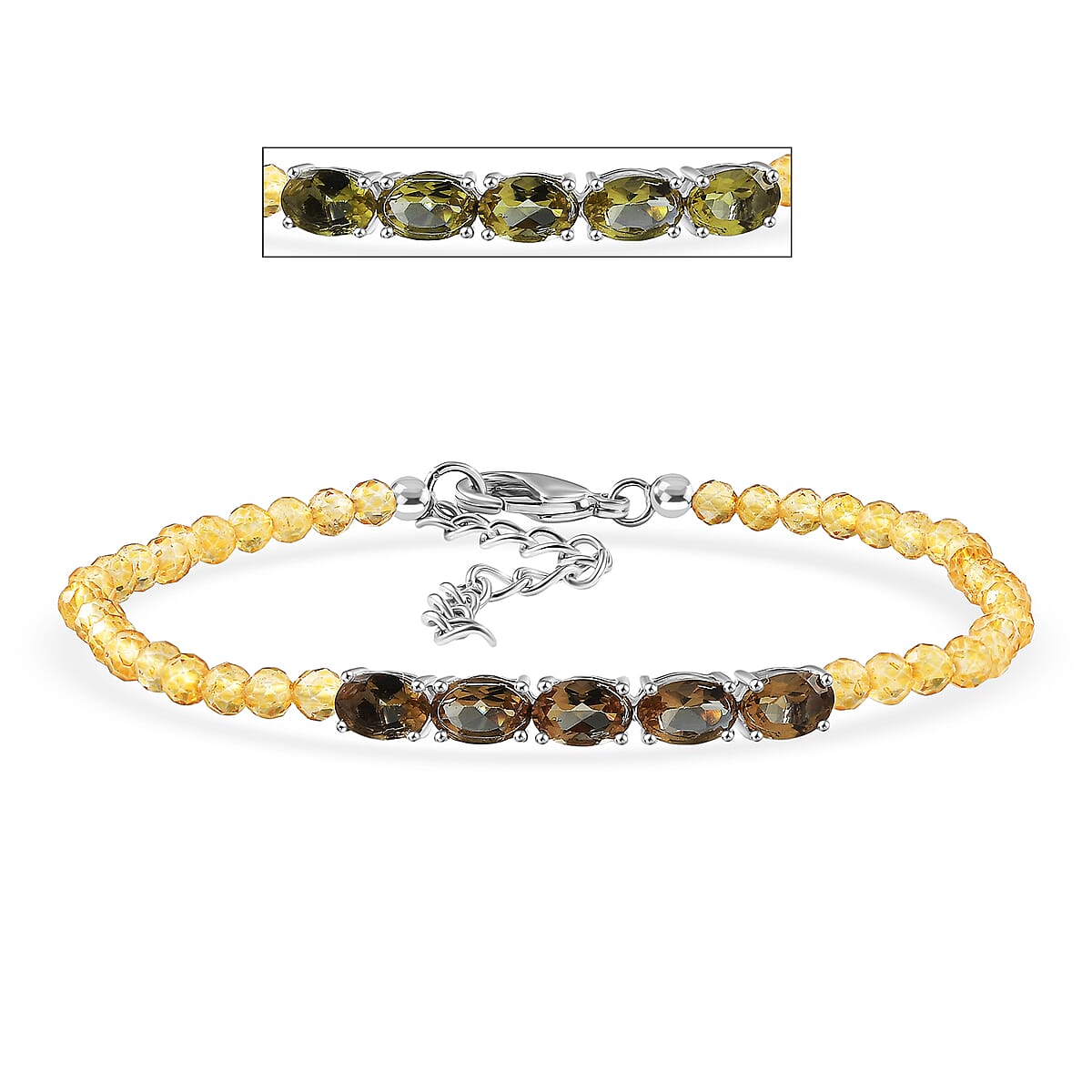 EverTrue Autumn Alexite and Brazilian Citrine 11.20 ctw Beaded Fire Line Bracelet in Platinum Bond (6.5-8.00In)