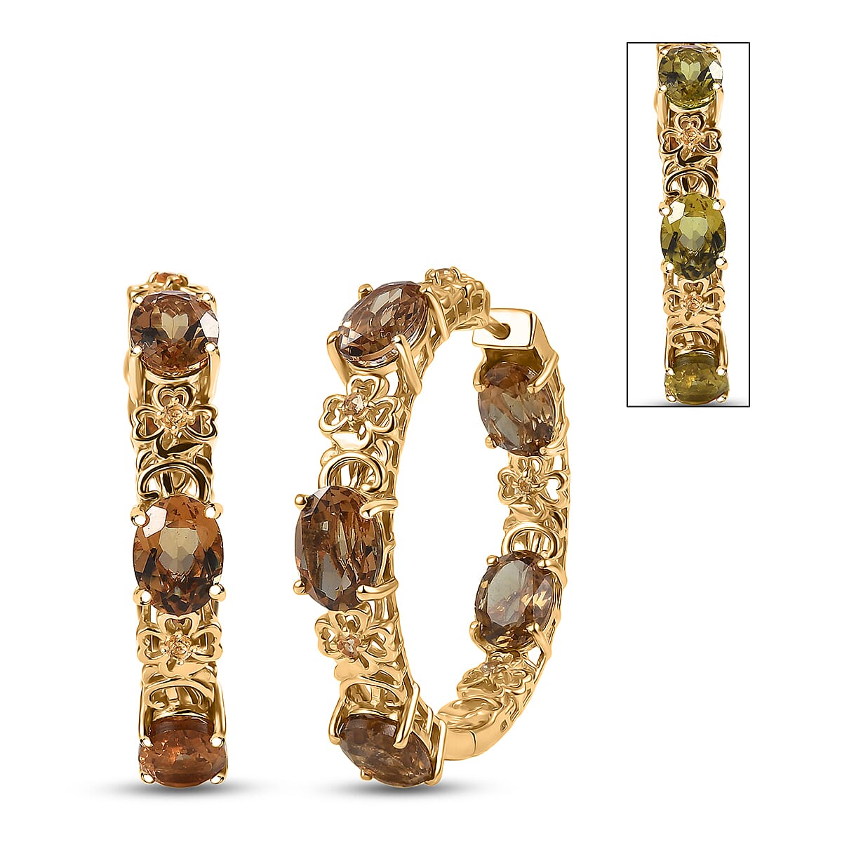 EverTrue Autumn Alexite and Brazilian Citrine 11.60 ctw Blossom Hoop Earrings in 18K YG Plated