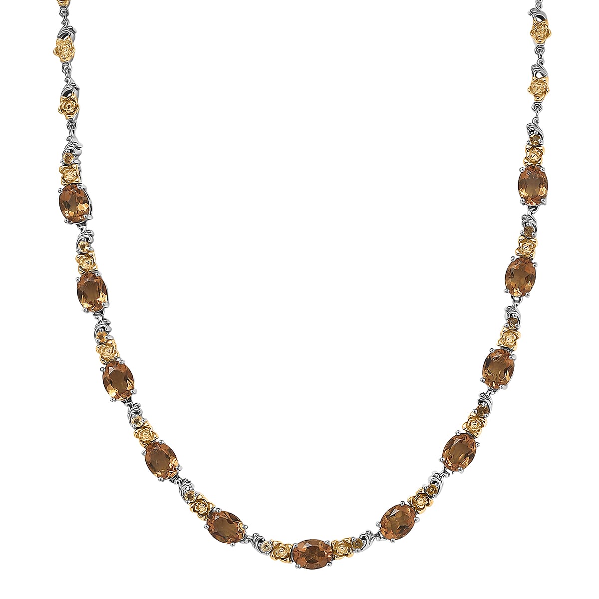 EverTrue Autumn Alexite and Brazilian Citrine 13.00 ctw Rose Flower Necklace in 18K YG Plated and Platinum Bond 18-20 Inches