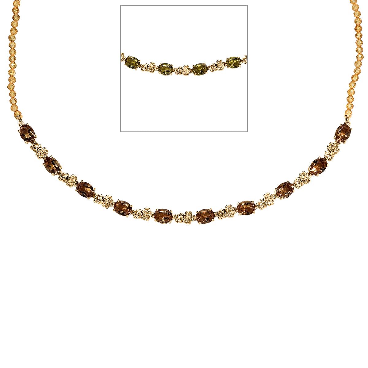 EverTrue Autumn Alexite and Brazilian Citrine 30.75 ctw Blossom Necklace in 18K YG Plated 18-20 Inches