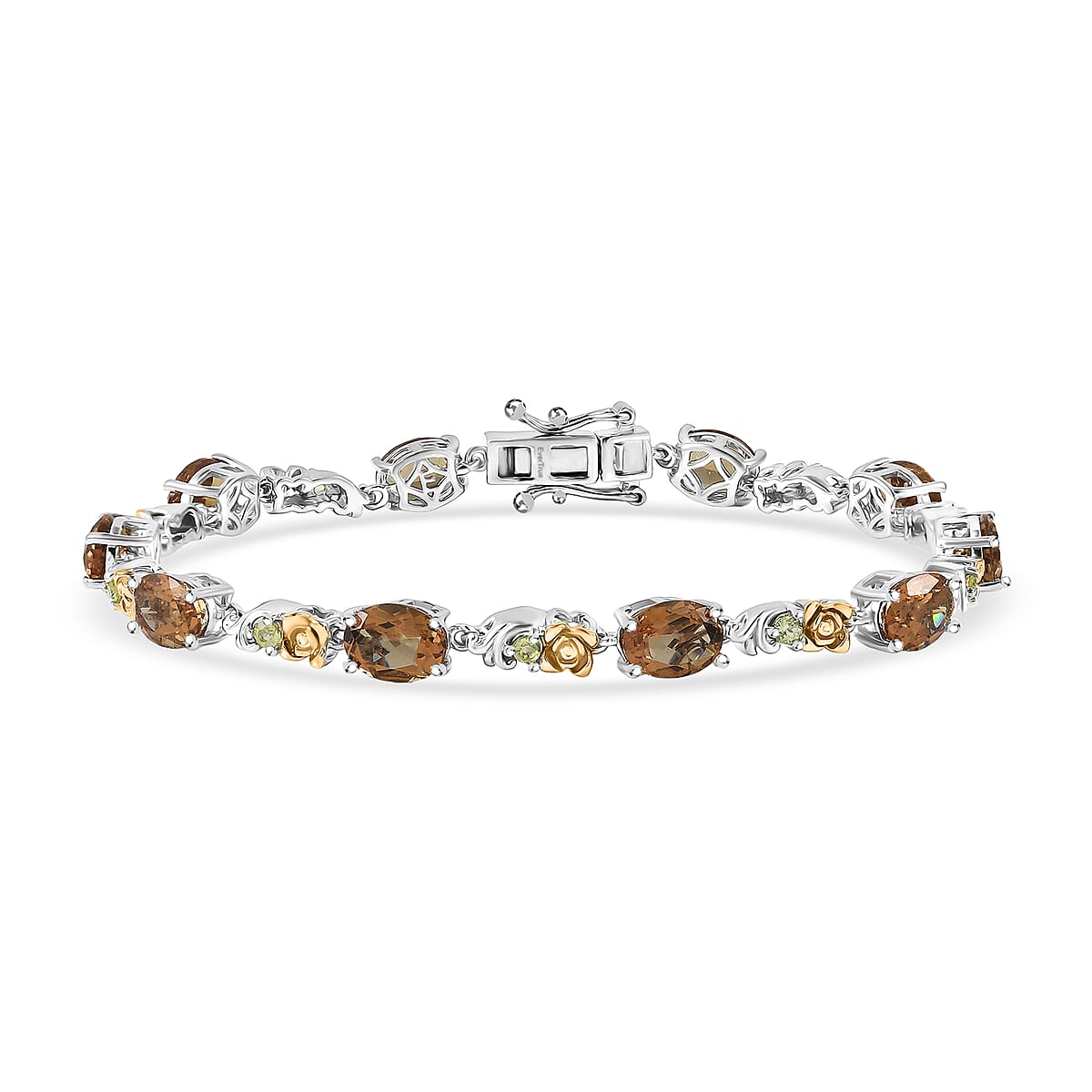 EverTrue Autumn Alexite and Hebei Peridot 12.50 ctw Rose Flower Bracelet in 18K YG Plated and Platinum Bond (8.00 In)