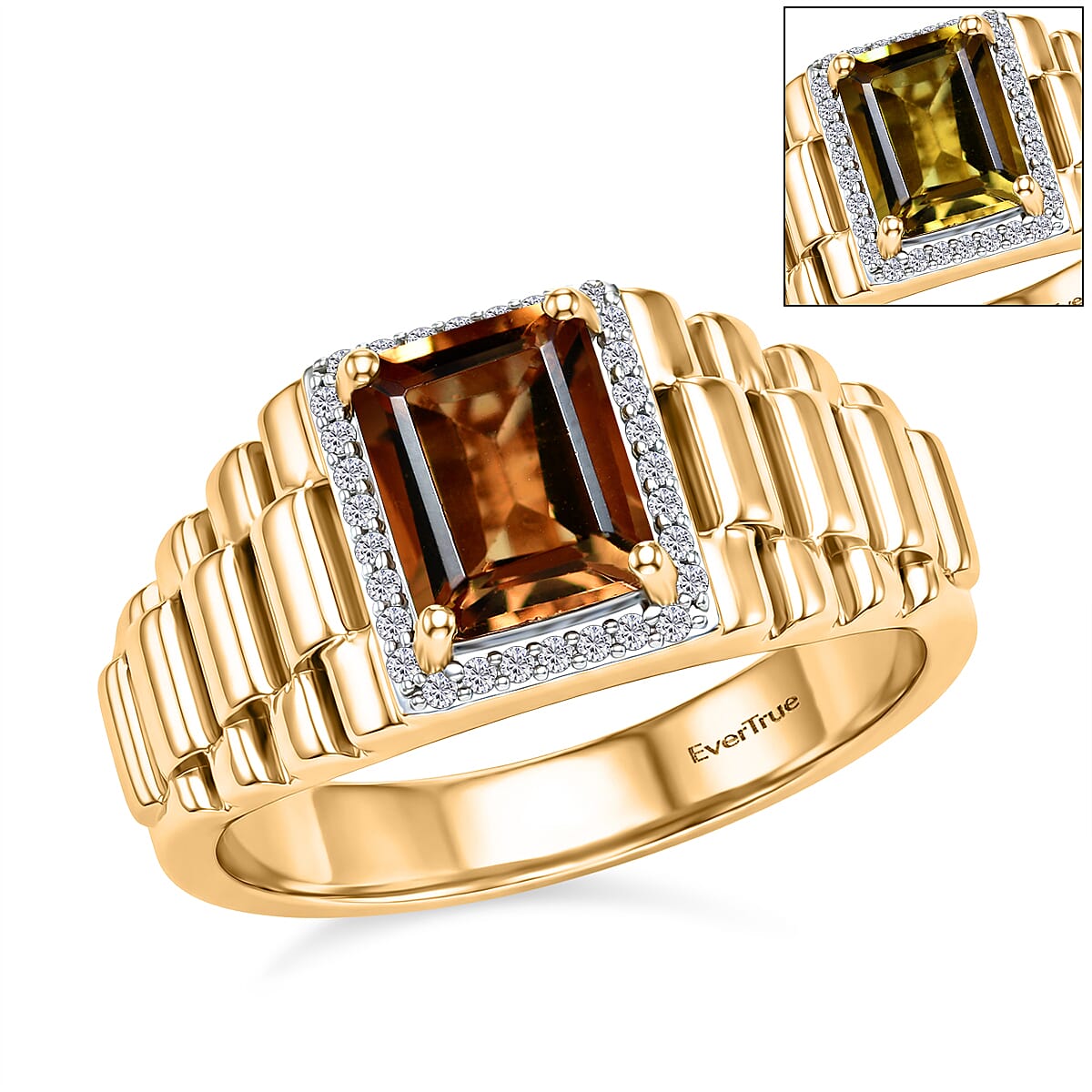 EverTrue Autumn Alexite and White Zircon 2.65 ctw Men's Ring in 18K YG Plated (Size 12.0) (Del. in 10-12 Days) (Del. in 10-12 Days)