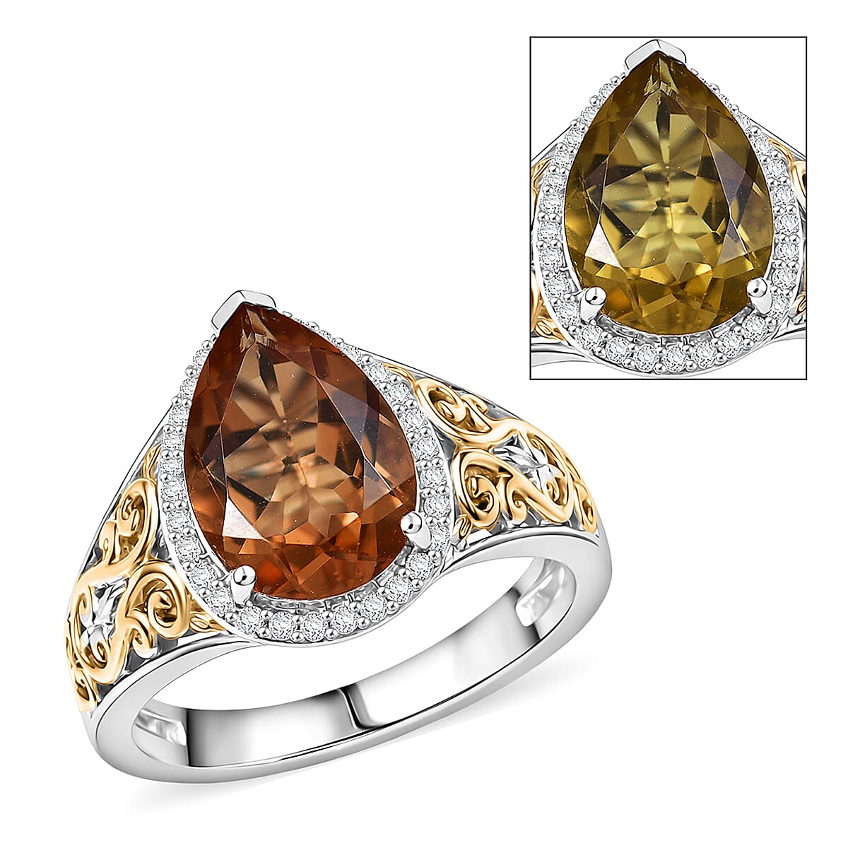 EverTrue Autumn Alexite and White Zircon 3.10 ctw Fallfire Regal Ring in 18K YG Plated and Platinum Bond (Size 8.0)