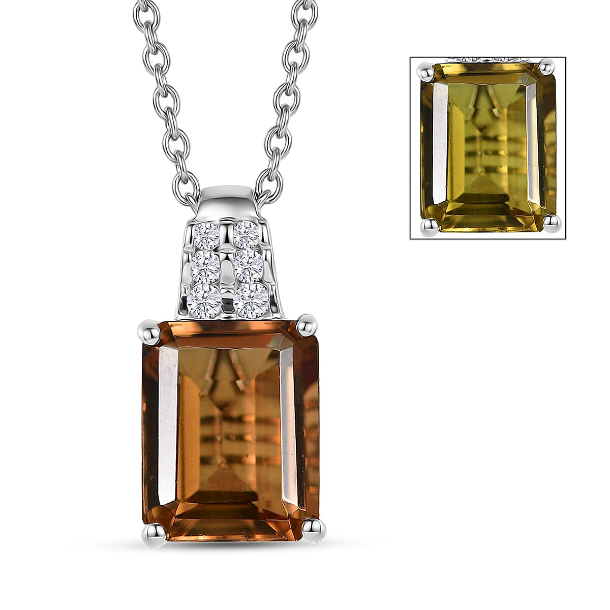 EverTrue Autumn Alexite and White Zircon 3.40 ctw Sunset Pillar Pendant in Platinum Bond with Stainless Steel Necklace 20 Inches
