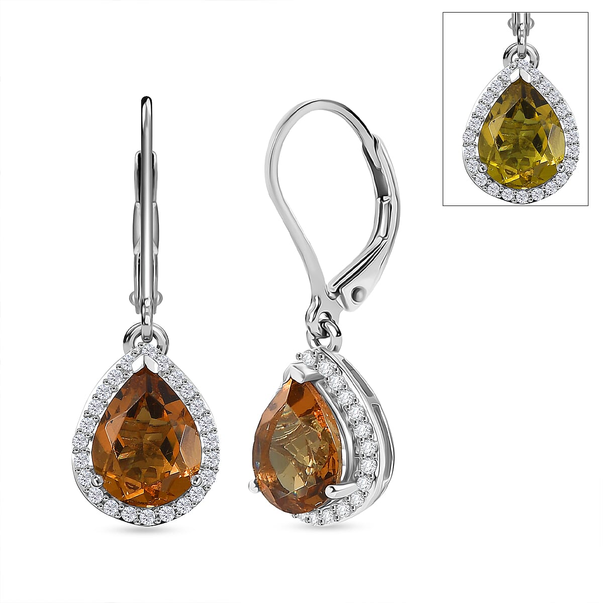 EverTrue Autumn Alexite and White Zircon 3.50 ctw Fallfire Regal Earrings in Platinum Bond