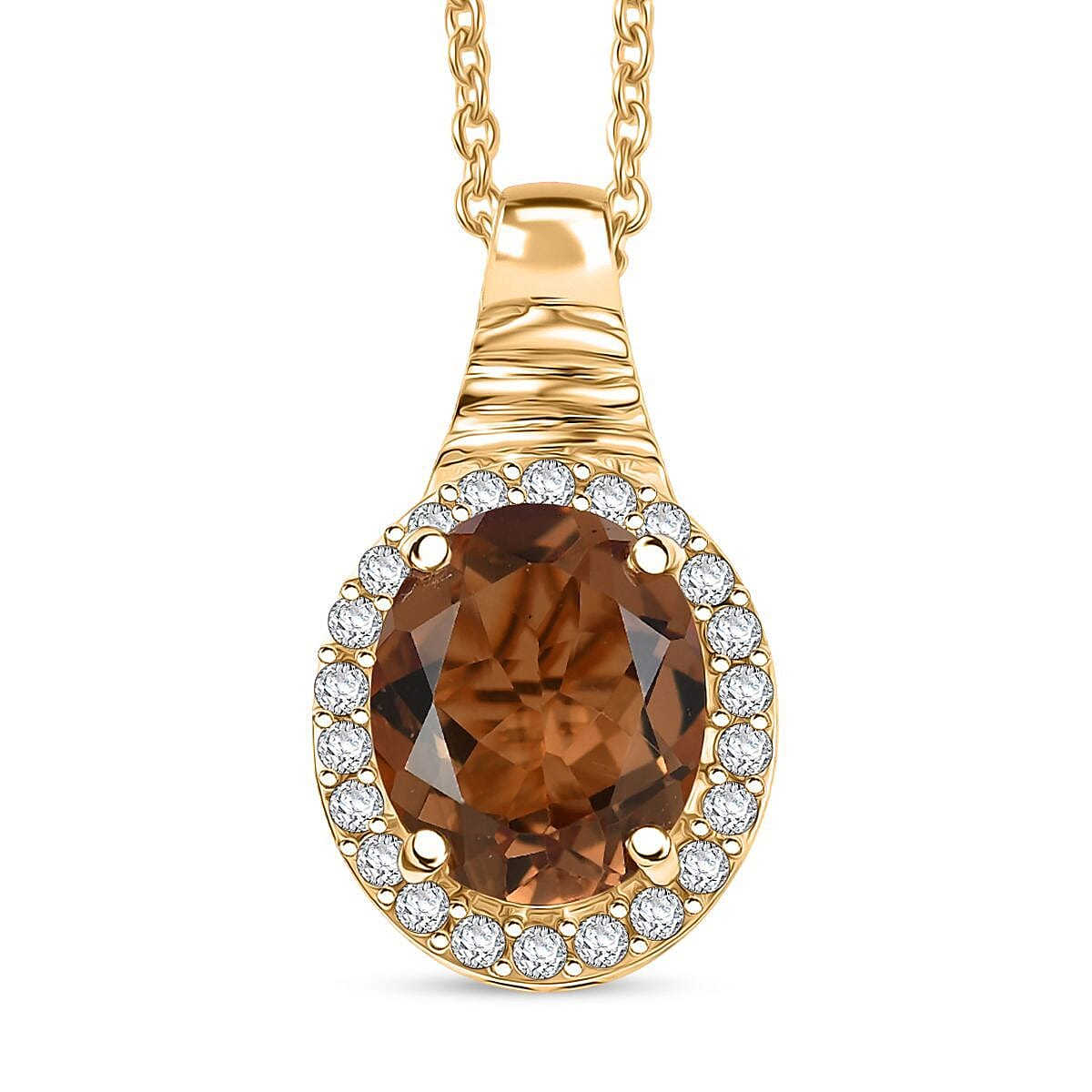 EverTrue Autumn Alexite and White Zircon 5.40 ctw Pendant in 18K YG Plated with ION Plated YG Stainless Steel Necklace 20 Inches