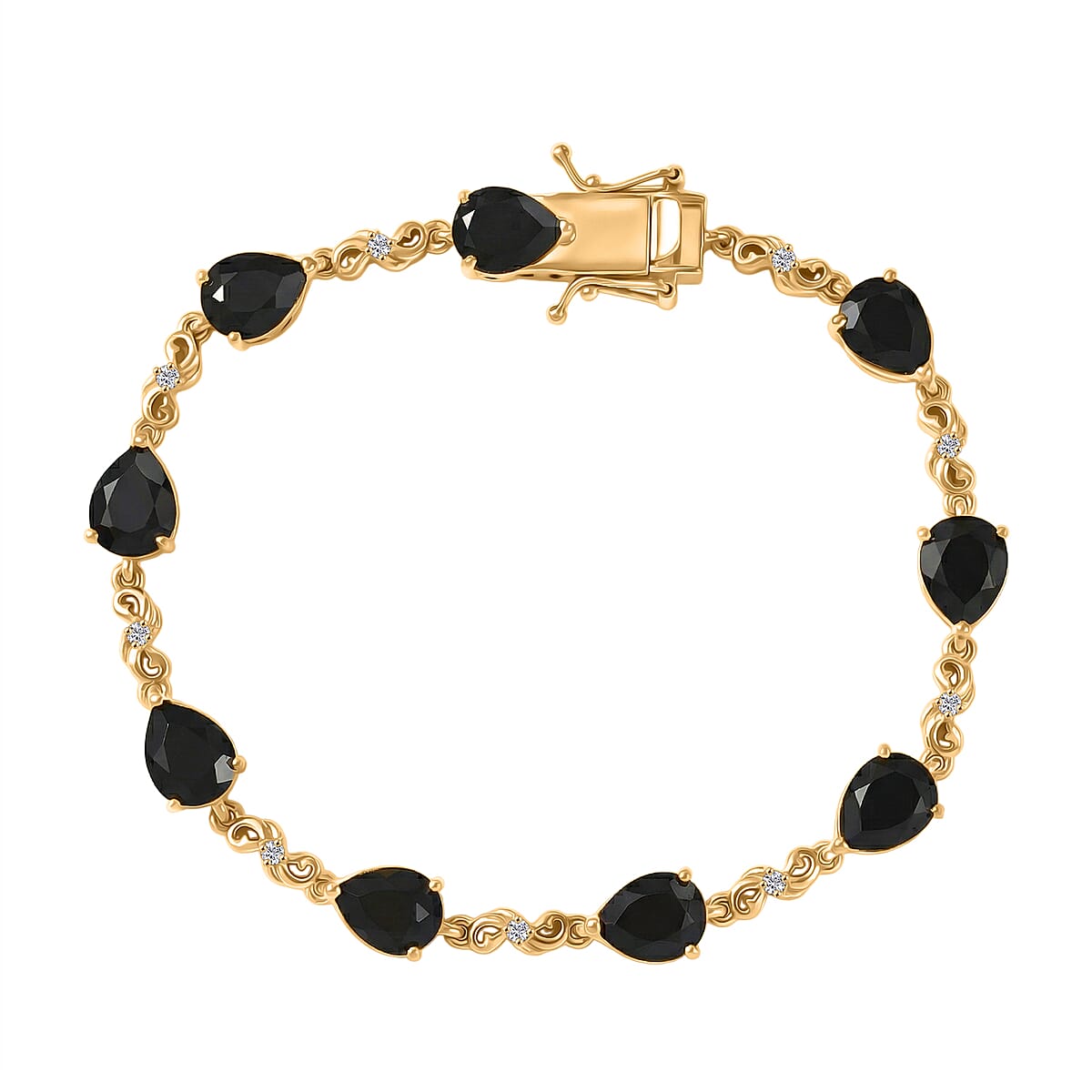 EverTrue Black Spinel and White Zircon 19.30 ctw Midnight Pear Bracelet in 18K YG Plated (8.00 In)