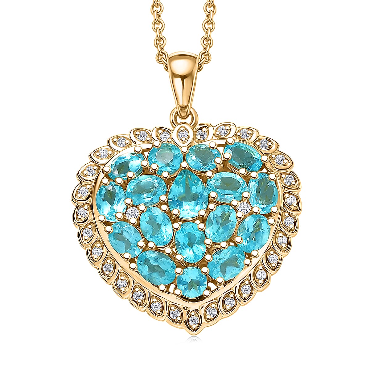 EverTrue Blue Apatite and White Zircon 3.65 ctw Pendant in 18K YG Plated with ION Plated YG Stainless Steel Necklace (20 Inches)