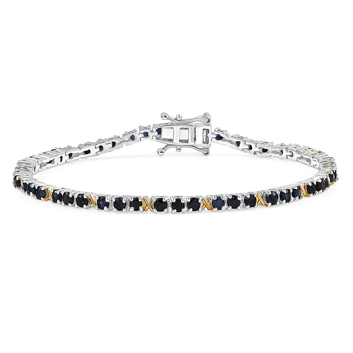 EverTrue Blue Sapphire 6.00 ctw XOXO Bracelet in 18K YG Plated and Platinum Bond (7.25 In)