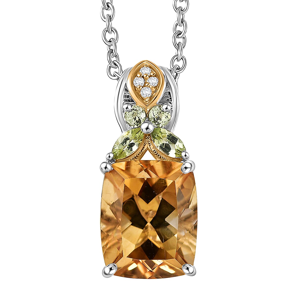 EverTrue Brazilan Citrine and Multi Gemstone 4.50 ctw Pendant in 18K YG Plated and Platinum Bond with Stainless Steel Necklace 20 Inches