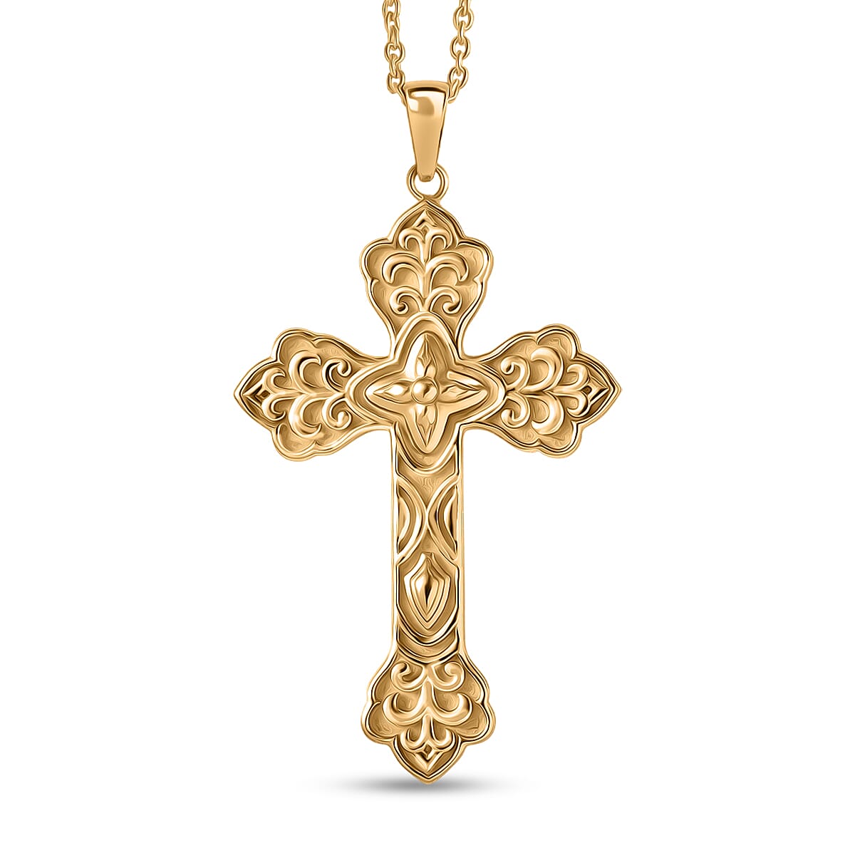 EverTrue Bronzella Collection Cross Pendant in 18K YG Plated Bronze with ION Plated YG Stainless Steel Necklace 20 Inches