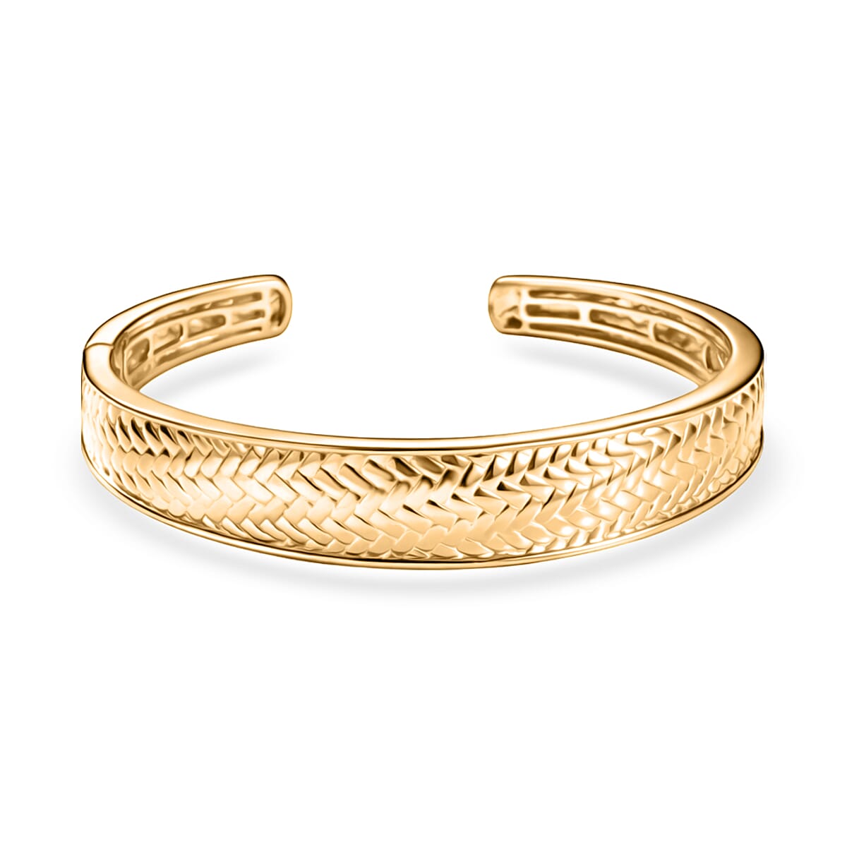 Refine your style with this EverTrue basket weave bracelet in durable metal. This elegant cuff bracelet for women features an 18K yellow gold plated bronze finish with a rich, textured appearance. Designed for statement styling, it elevates both everyday outfits and special occasion looks.