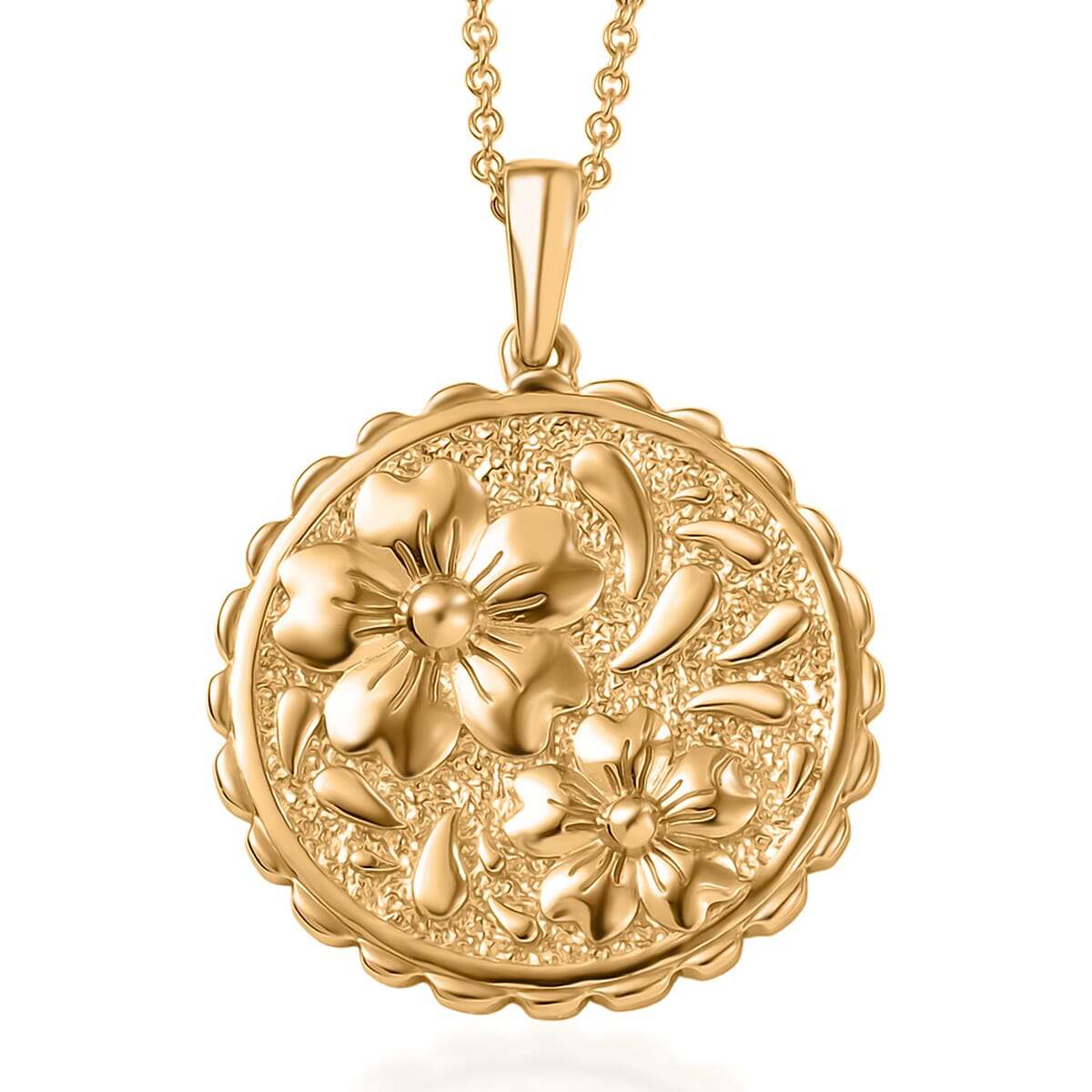 EverTrue Bronzella Collection Floral Pendant in 18K YG Plated Bronze with ION Plated YG Stainless Steel Necklace 20 Inches