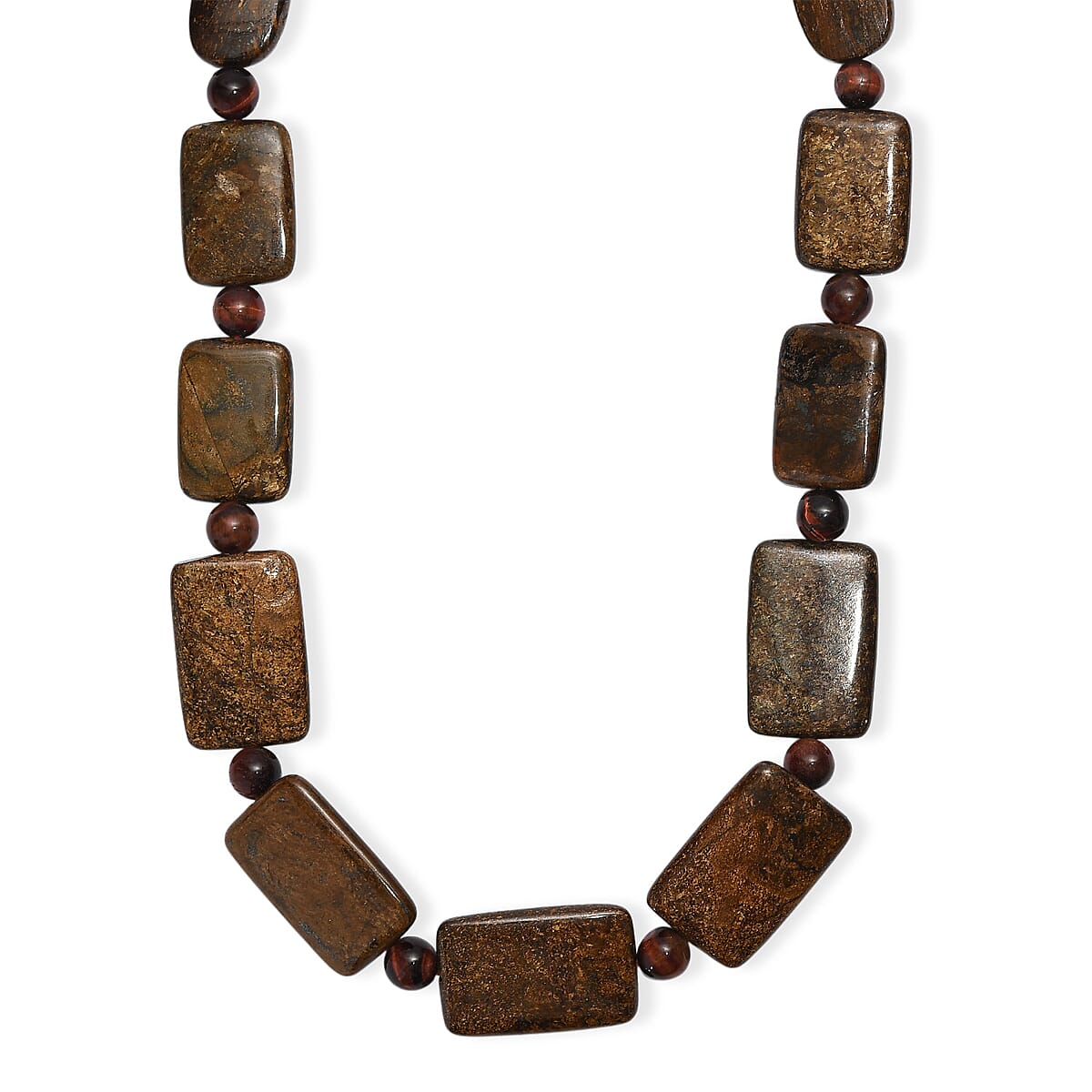 EverTrue Brownzite Jasper and Red Tiger Eye 485.00 ctw Beaded Necklace (20 Inches) in Platinum Bond