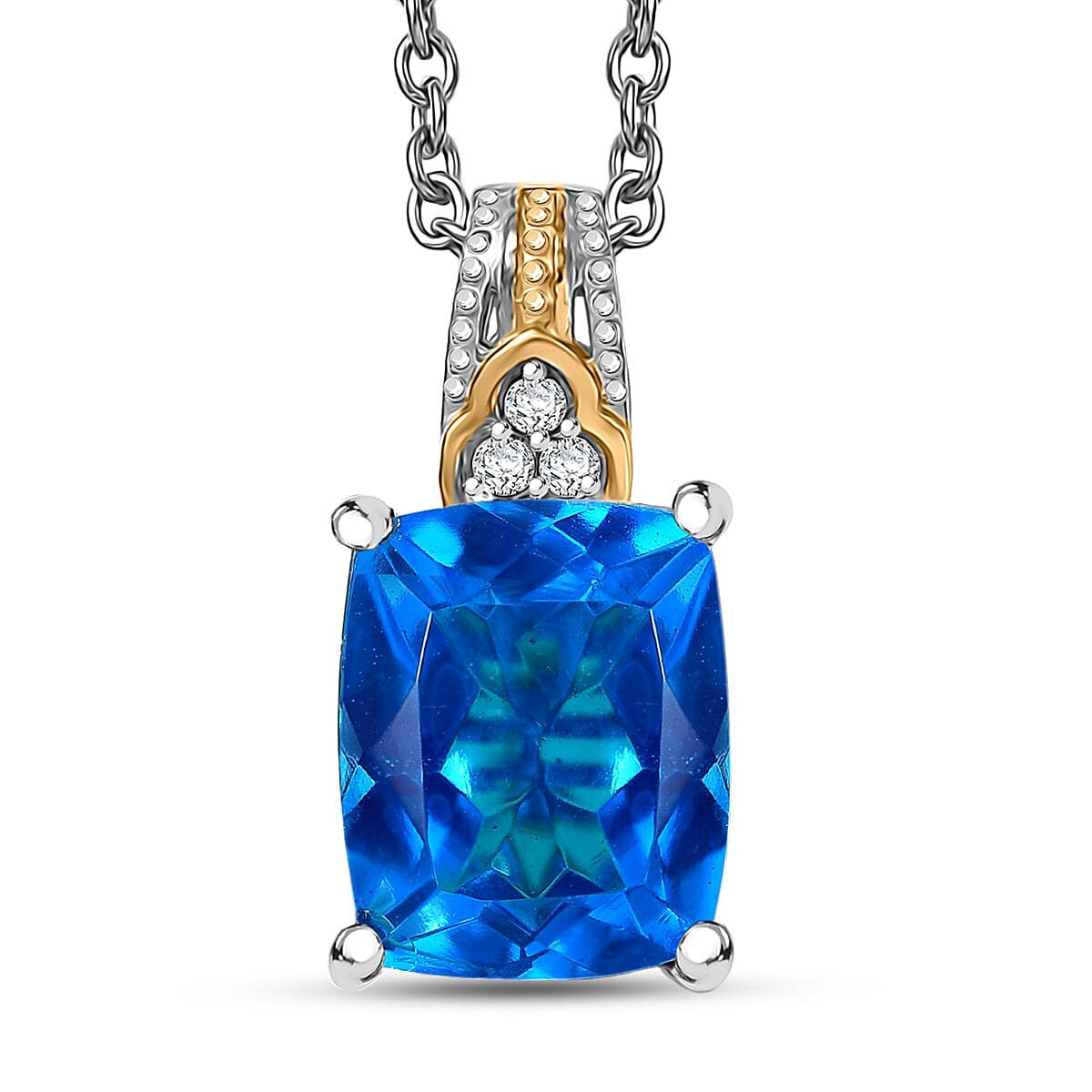 EverTrue Caribbean Quartz and White Zircon 4.40 ctw Pendant in 18K YG Plated with ION Plated YG Stainless Steel Necklace 20 Inches