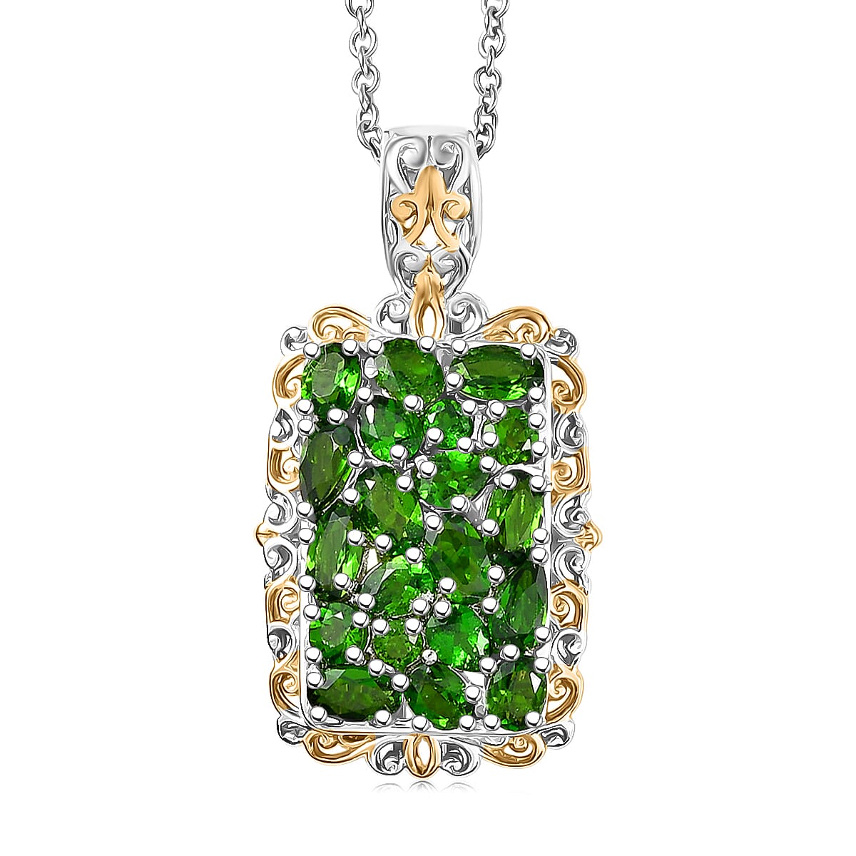 EverTrue Chrome Diopside 3.65 ctw Pendant in 18K YG Plated and Platinum Bond with Stainless Steel Necklace (20 Inches)