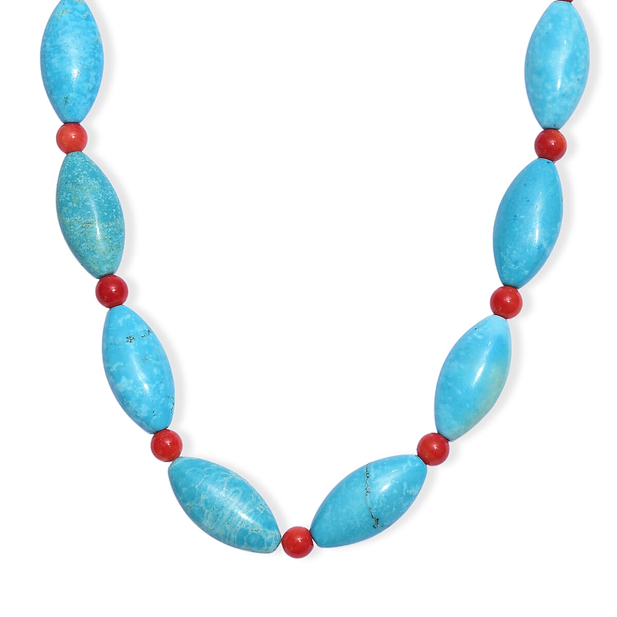 EverTrue Dyed Blue Magnesite and Mediterranean Coral 375.00 ctw Beaded Necklace in Platinum Over 18 Inches