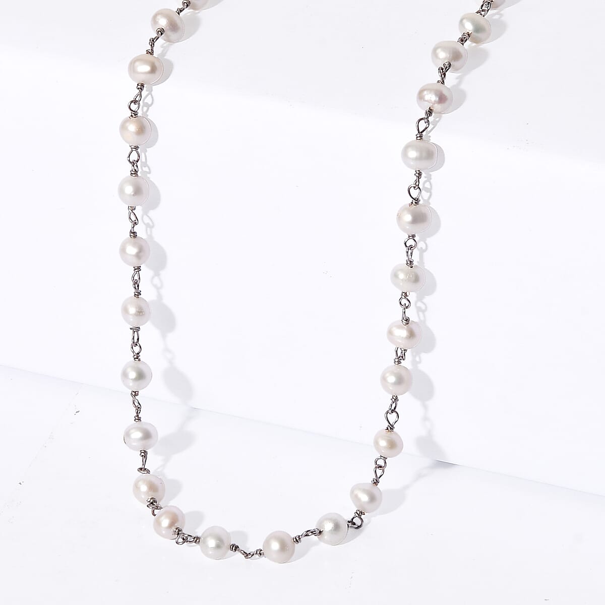EverTrue Freshwater Pearl Beaded Necklace in Stainless Steel 20 Inches