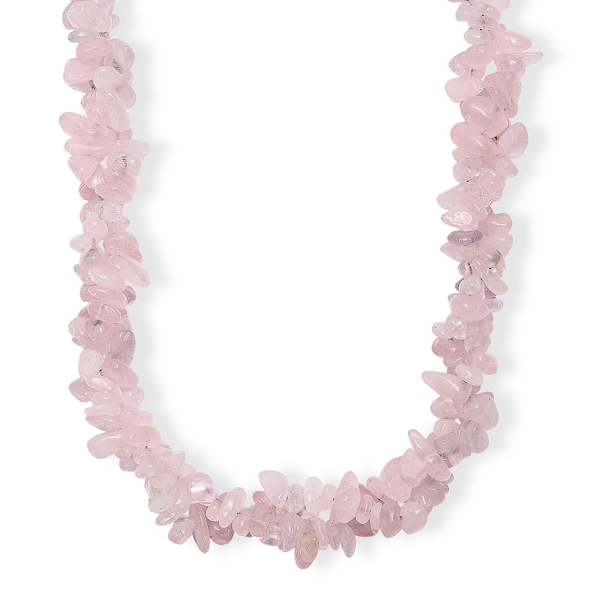 EverTrue Galilea Rose Quartz 380.00 ctw Chips Necklace in Platinum Bond 20 Inches