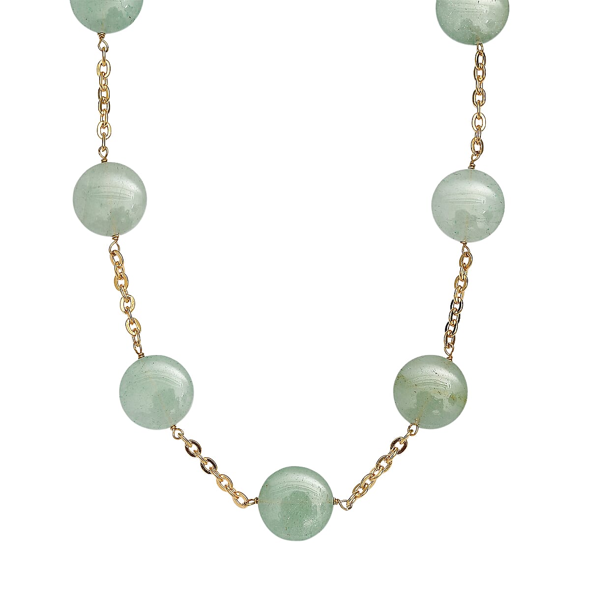 EverTrue Green Aventurine 105.00 ctw Beaded Necklace (24-26 Inches) in ION Plated YG Stainless Steel