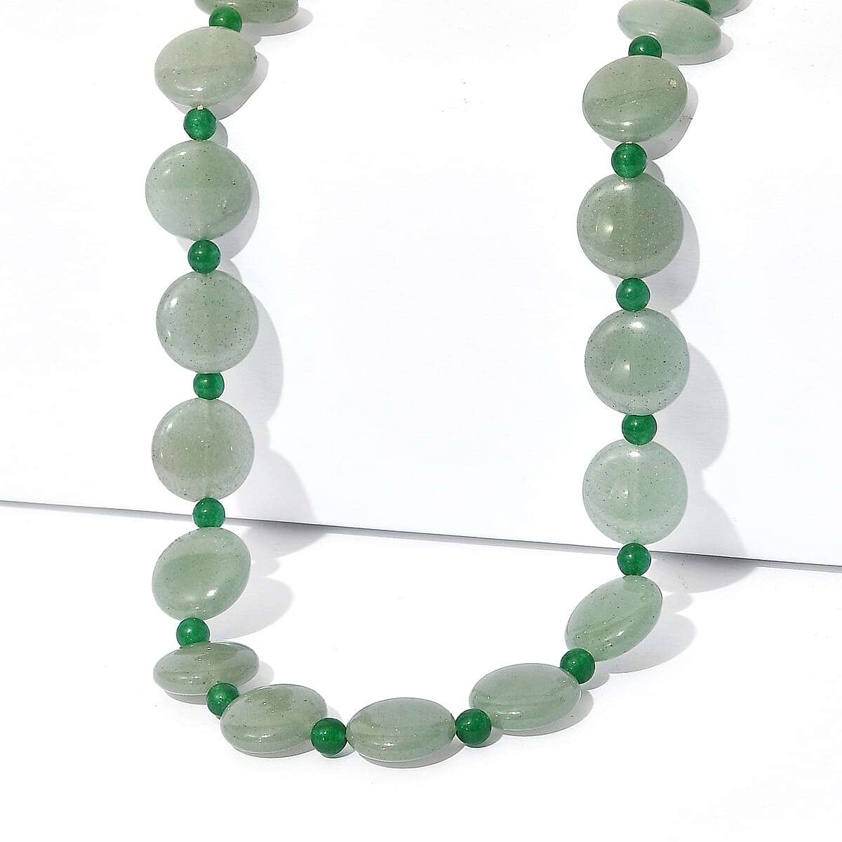 EverTrue Green Aventurine 240.00 ctw Beaded Necklace (18 Inches) in Stainless Steel