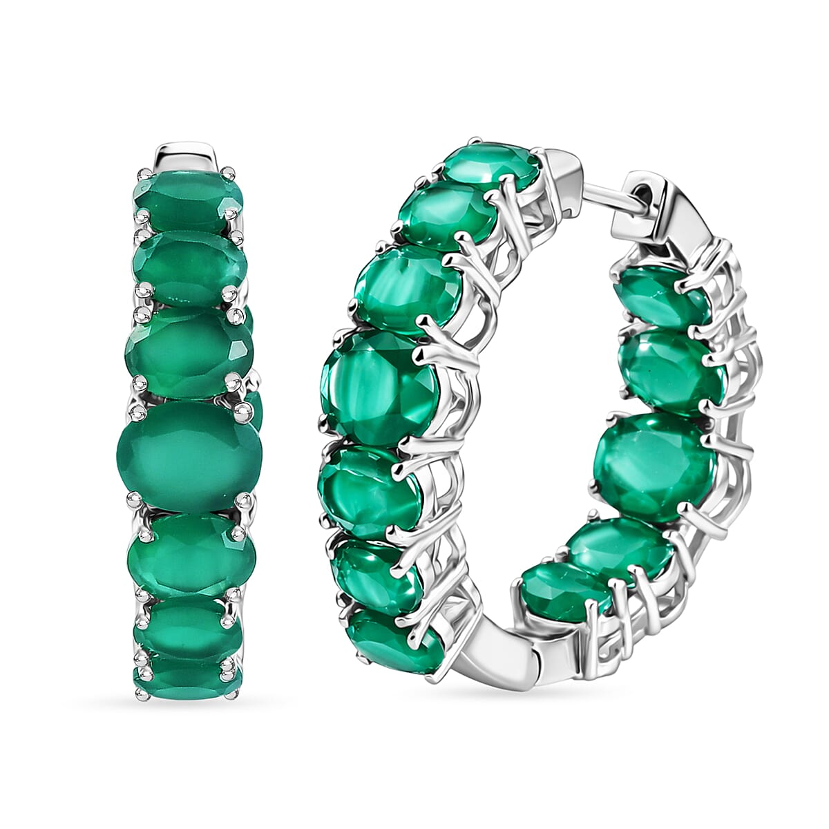 EverTrue Green Onyx 16.20 ctw Hoop Earrings in Platinum Bond