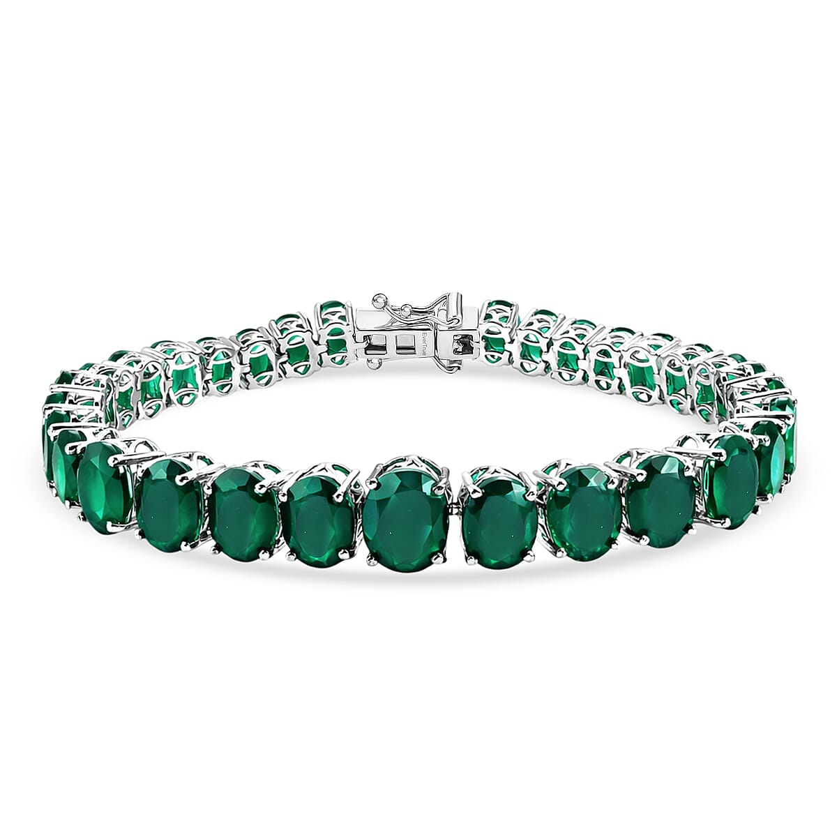 EverTrue Green Onyx 33.10 ctw Tennis Bracelet in Platinum Bond (7.25 In)