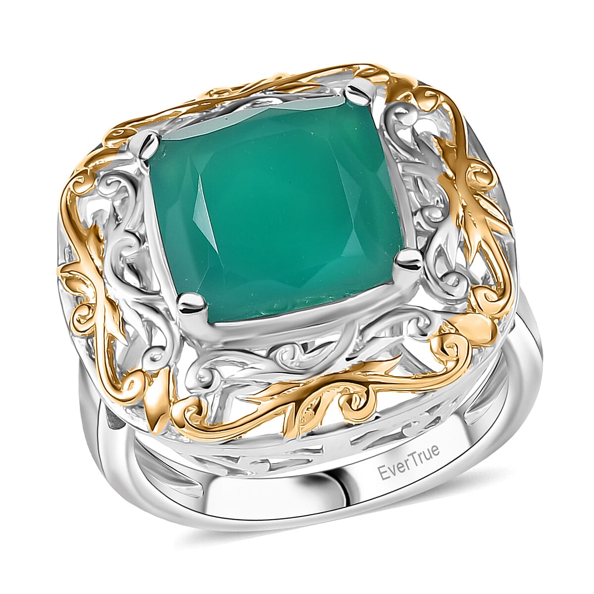 EverTrue Green Onyx Ring in 18K YG Plated and Platinum Bond (Size 10.0) 5.40 ctw