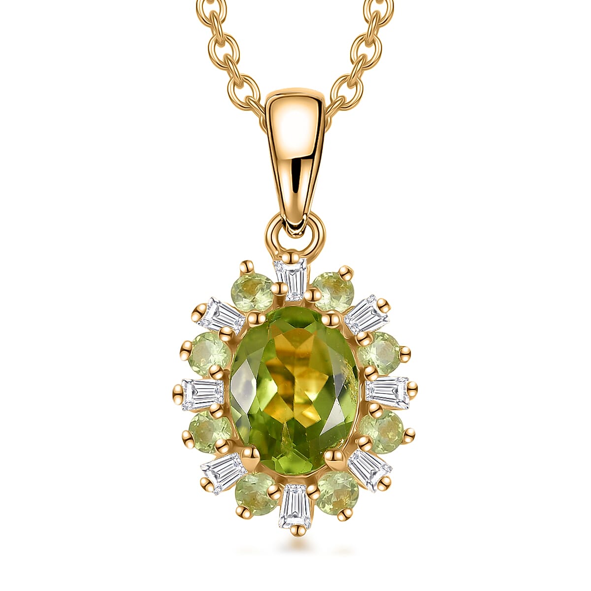 EverTrue Hebei Peridot and Moissanite 2.00 ctw Pendant in 18K YG Plated with ION Plated YG Stainless Steel Necklace (20 Inches)