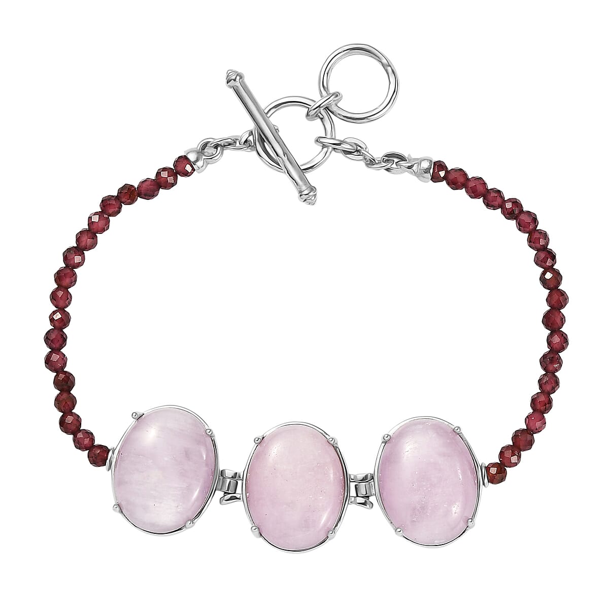 EverTrue Kunzite and Orissa Rhodolite Garnet 42.35 ctw Beaded Bracelet in Stainless Steel (7.25 In)