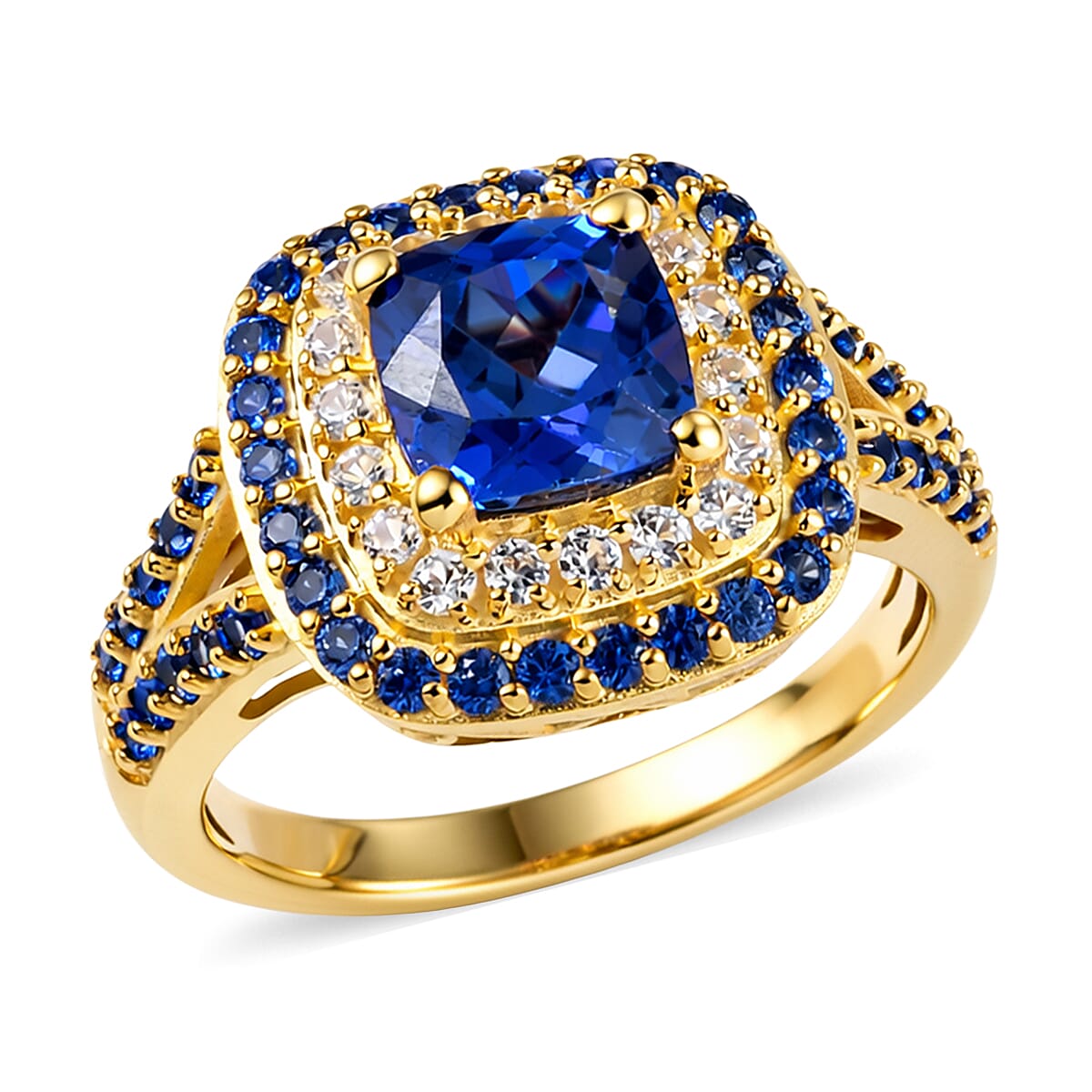 EverTrue Lab Created Blue and White Sapphire 2.60 ctw Royal Double Halo Ring in 18K RG Plated (Size 10.0)