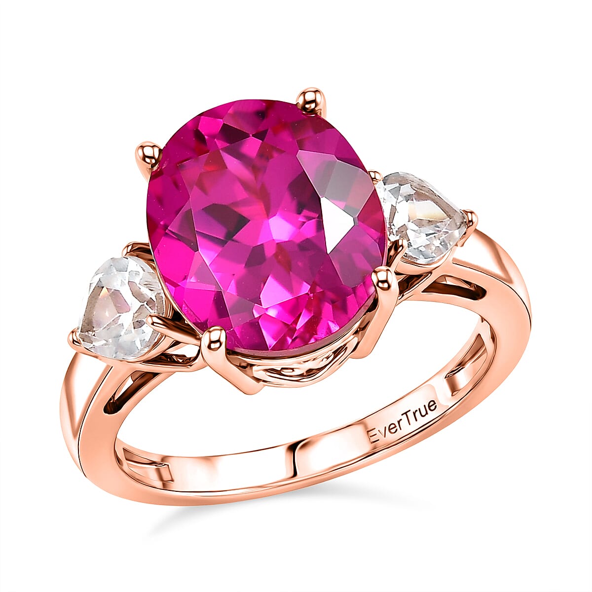 EverTrue Lab Created Pink and White Sapphire 7.50 ctw Crown Ring in 18K RG Plated (Size 11.0)