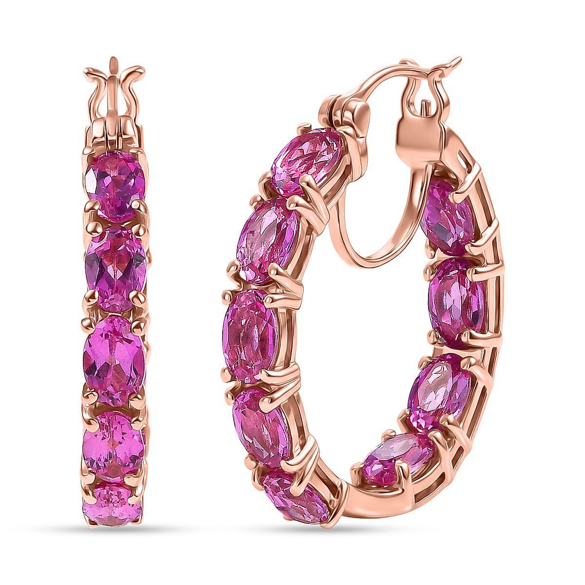 EverTrue Lab Created Pink Sapphire 11.15 ctw Hoop Earrings in 18K RG Plated