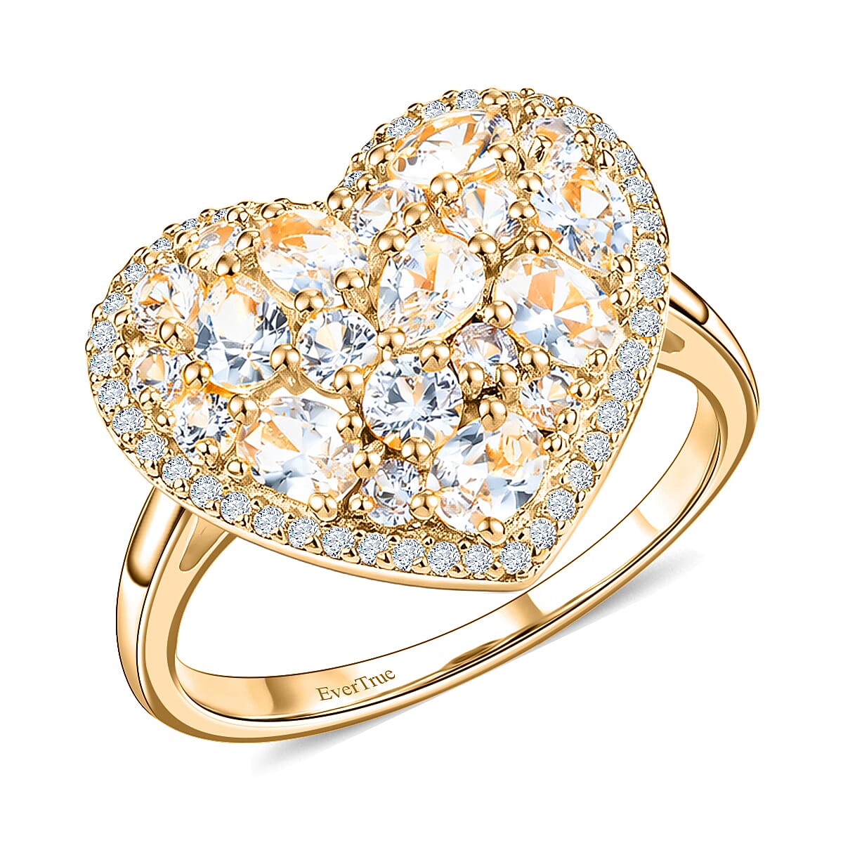 EverTrue Lab Created White Sapphire 2.50 ctw Heart Ring in 18K YG Plated (Size 10.0)